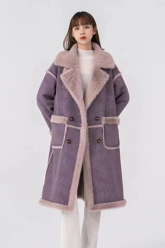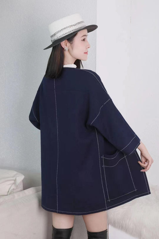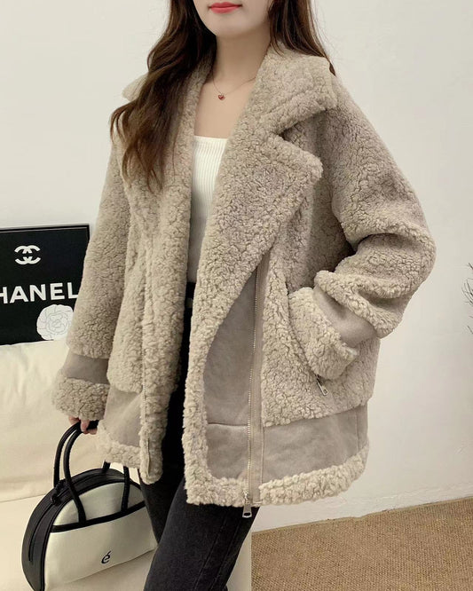 Color Block Faux Leather Jacket with Patch Pocket/2383#